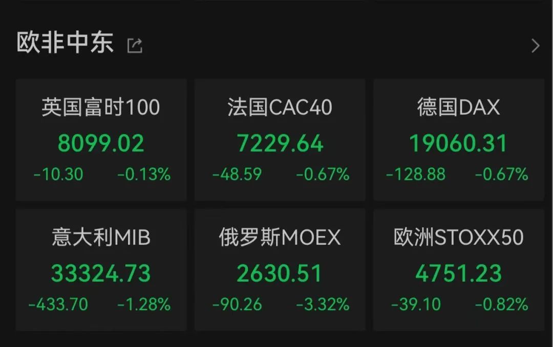Wind数据显示,截至当地周二(11月19日)收盘,欧股全线走弱。