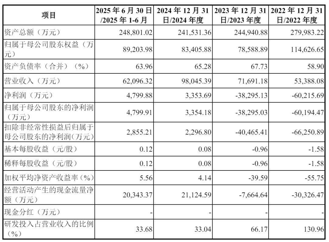 财务数据显示,公司已实现从亏损到盈利的关键转变。2022年至2024年,营收从5.34亿元增长至9.8亿元,净利润则从-6.02亿元扭亏为盈至3353.69万元;扣非后净利润从-6.63亿元改善至2296.80万元。